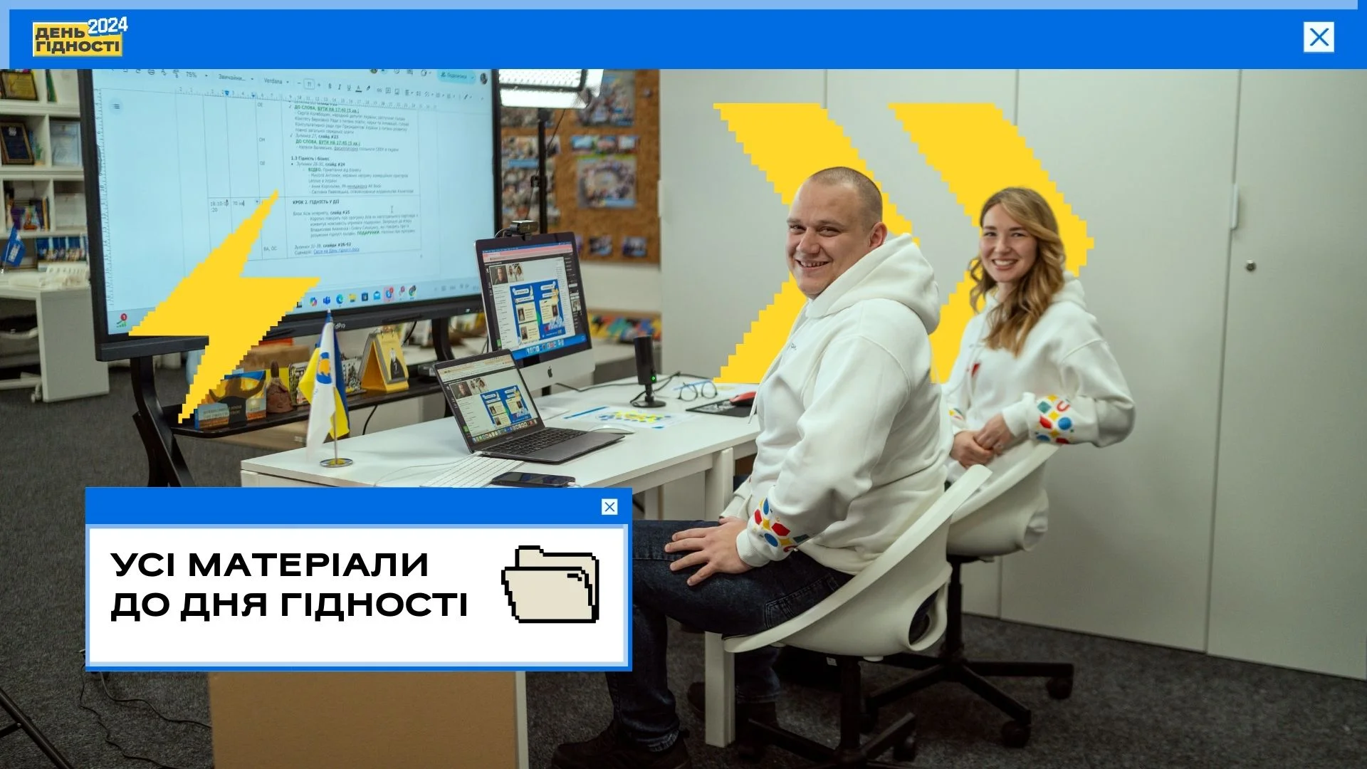 - початкове відео з відкриття вебінара для тренування мозку і розуміння принципів гідної онлайн-поведінки https://bit.ly/openinggdignityukraine2024